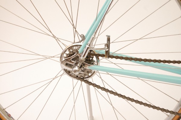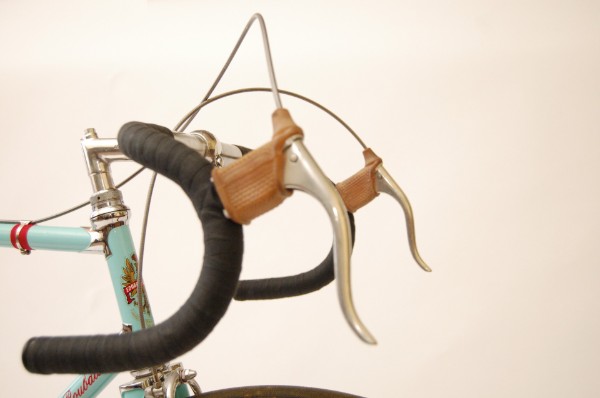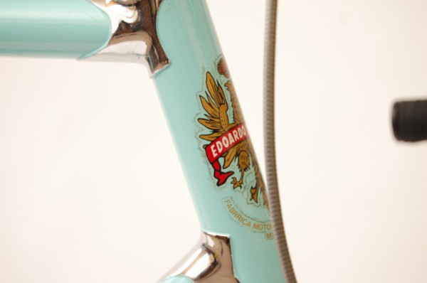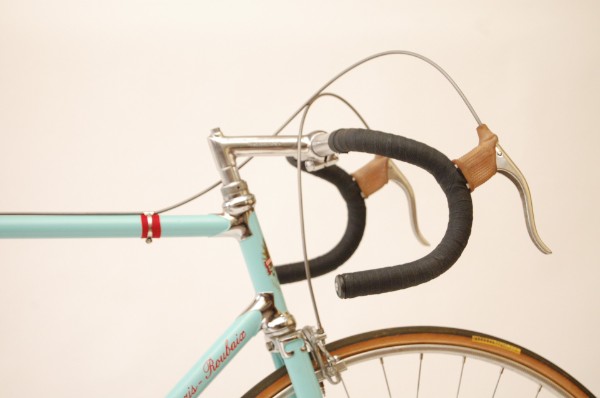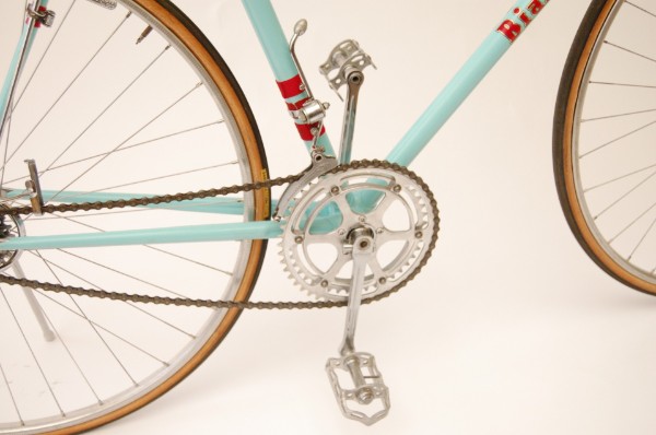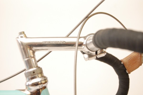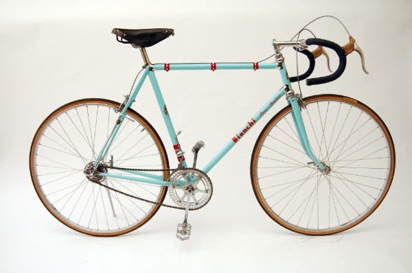 Bianchi Paris / Roubaix Italy, 1949 Professional road bike from Bianchi # 392708 finished in Bianchi celeste. Equipped with 1949 Campagnolo Paris Roubaix shifter, Universal brakeset, Ambrosio bar/stem and Nisi rims. Magistroni crankset fluted 4times,TA cain wheel with TA pro adapter, Sheffield pedals. Restored